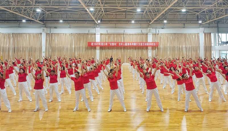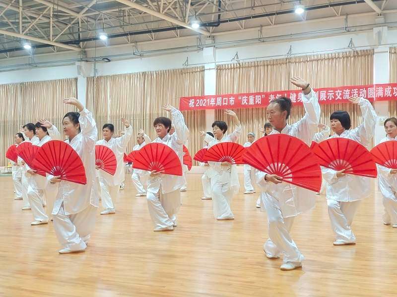 10月14日上午,以“尊老敬老迎重阳 健老康乐展风采”为主题的2021年周口市“庆重阳”老年人健身系列展示交流活动在周口市体育中心老年人健身馆举行,来自中心城区10余个健身专项委员会的近千名老年健身爱好者欢聚一堂,共同庆祝全国第9个法定“老年节”的到来。