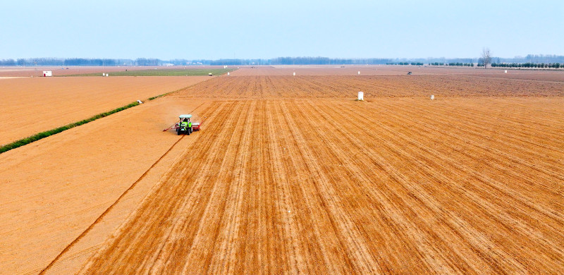 扶沟县抓住目前天气晴好、墒情充足的有利时机,全力做好秋收秋种工作,确保收获一块、耕种一块,力争为来年小麦丰收奠定良好基础。图为10月15日无人机拍摄的早茬麦播种场景。黄金峰 摄