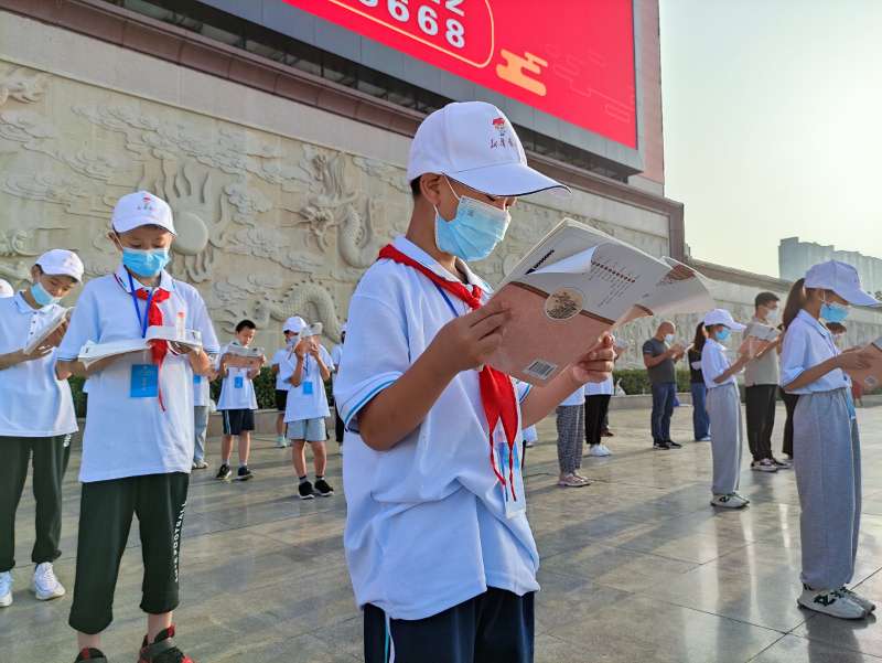 7月29日6时,周口市中心城区五一文化广场上,50名小朋友和家长共同诵读国学经典。近日,由周口市委宣传部、团市委、市新华书店联合举办的“强国复兴有我——书香少年,健康青春”周口市青少年暑期公益夏令营活动,吸引众多市民参与。据了解,此次夏令营活动将持续至8月15日。(见习记者 郑伟元 摄)