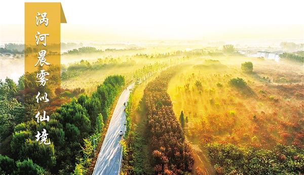 10月12日清晨,在鹿邑县涡河省级湿地公园,弥漫在空气中的晨雾犹如一层薄纱,若隐若现,朦朦胧胧,倾洒在水面和大地上,犹如人间仙境,美不胜收。( 记者 侯国防 通讯员 厉佳 摄)
