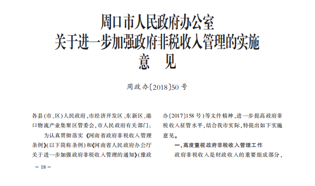 周口市人民政府办公室关于进一步加强政府非税收入管理的实施意见