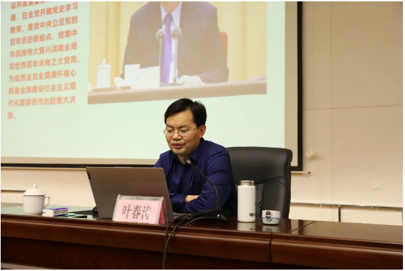 报告会上,叶春涛教授以《中国共产党的百年奋斗历程与经验》为题,结合建国、兴国、富国、强国和组织的力量、人心的力量、制度的力量、改革的力量、信仰的力量讲述了中国共产党的百年奋斗历程和基本经验,用大量生动的人物故事和党史案例,系统回顾百年来,我们党团结带领人民走过的光辉历程,取得的光辉成就。