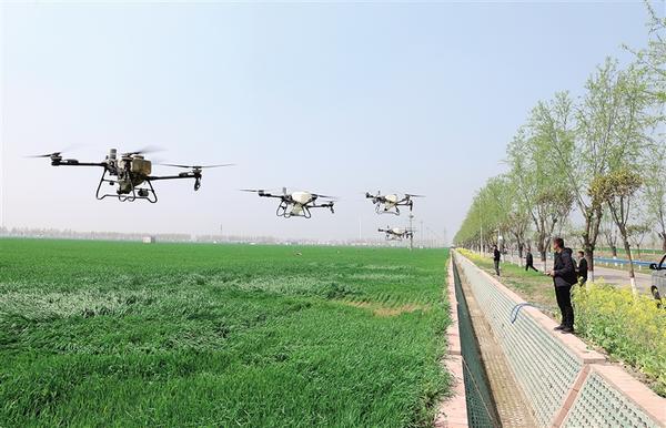 4月1日上午,郸城县农技人员操作无人机开展“一喷三防”作业。该县运用智慧农业平台实时监测麦田墒情、苗情,通过手机应用与云端人工智能技术,实现麦田精准化、智能化管护,为夏粮丰收奠定坚实基础。